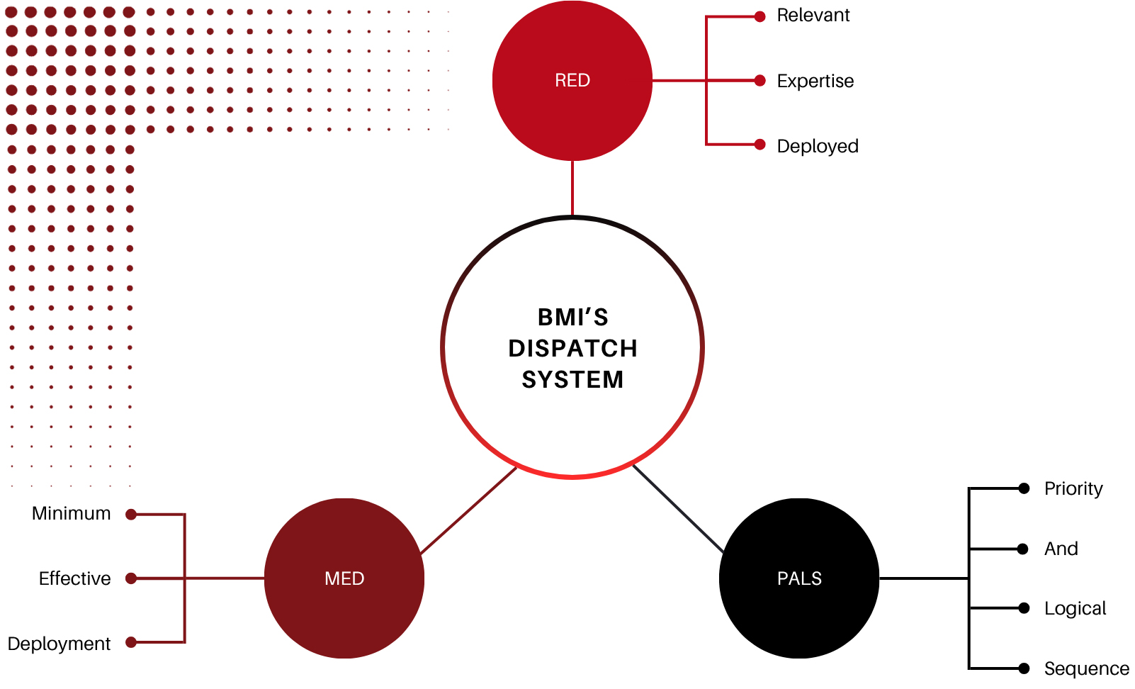 RED MED PALS is more than a slogan. It is the bridge from business-first principles to an operating system that actually runs your work. We start by defining the purpose: match the right person to the right job, at the right moment, in the right sequence, at the right cost. That mandate comes straight from business axioms: eliminate waste, preserve momentum, and protect quality. BMI applies those axioms to itself first. We would not ask you to trust a chef who will not eat his own cooking, and we hold ourselves to the same standard. So, we designed a dispatch system that operationalizes the philosophy: identify the objective, determine the effort level, route to the appropriate specialist, and stage the work so upstream choices lock in downstream success. The effect is tangible. Expertise is never stranded, generalists are not asked to improvise outside their lane, and the cadence of work remains smooth instead of stop-and-go. In short, business clarity becomes execution clarity - because the philosophy is encoded in how tasks move, not just in how people talk.ill not eat his own cooking, and we hold ourselves to the same standard. So, we designed a dispatch system that operationalizes the philosophy: identify the objective, determine the effort level, route to the appropriate specialist, and stage the work so upstream choices lock in downstream success. The effect is tangible. Expertise is never stranded, generalists are not asked to improvise outside their lane, and the cadence of work remains smooth instead of stop-and-go. In short, business clarity becomes execution clarity - because the philosophy is encoded in how tasks move, not just in how people talk.