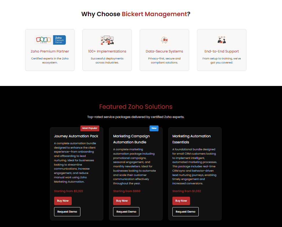 With services designed to cater to each client's unique needs, BMI has the business management and Zoho expertise to assist your company, no matter the size, demographic, industry, or budget.