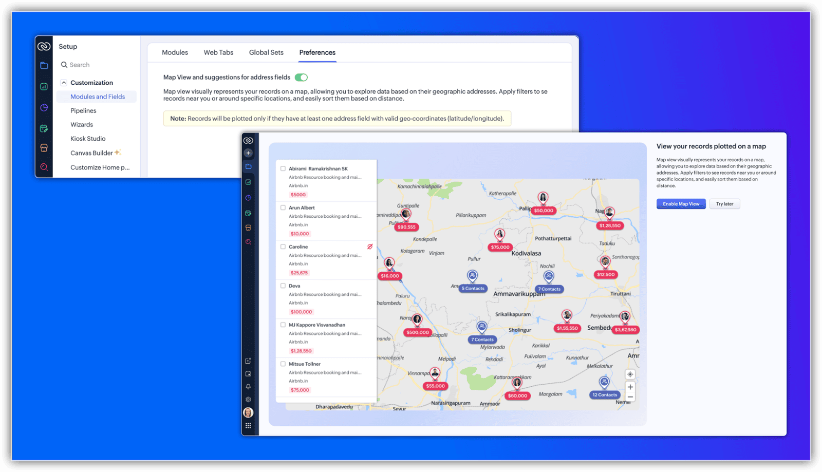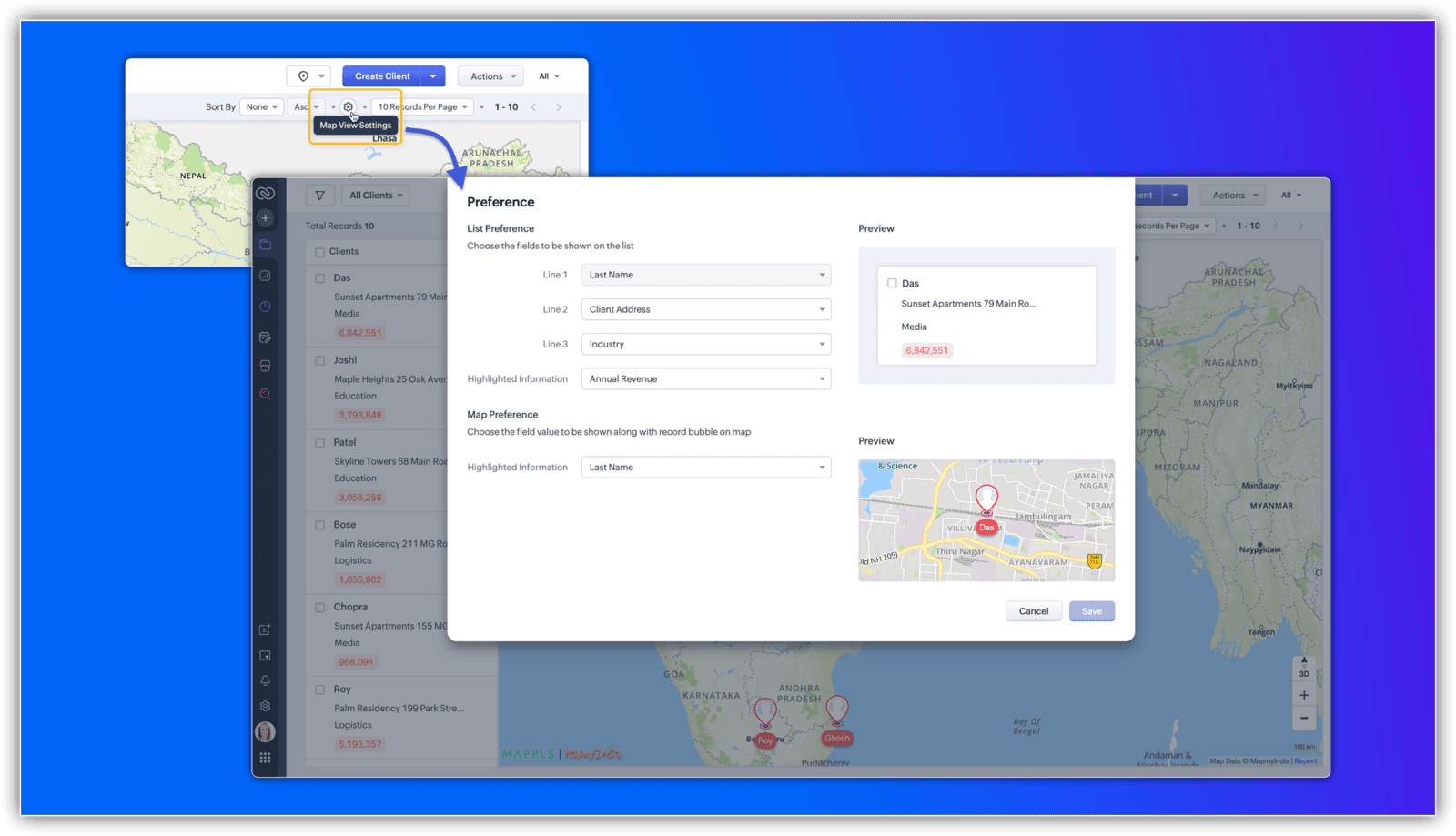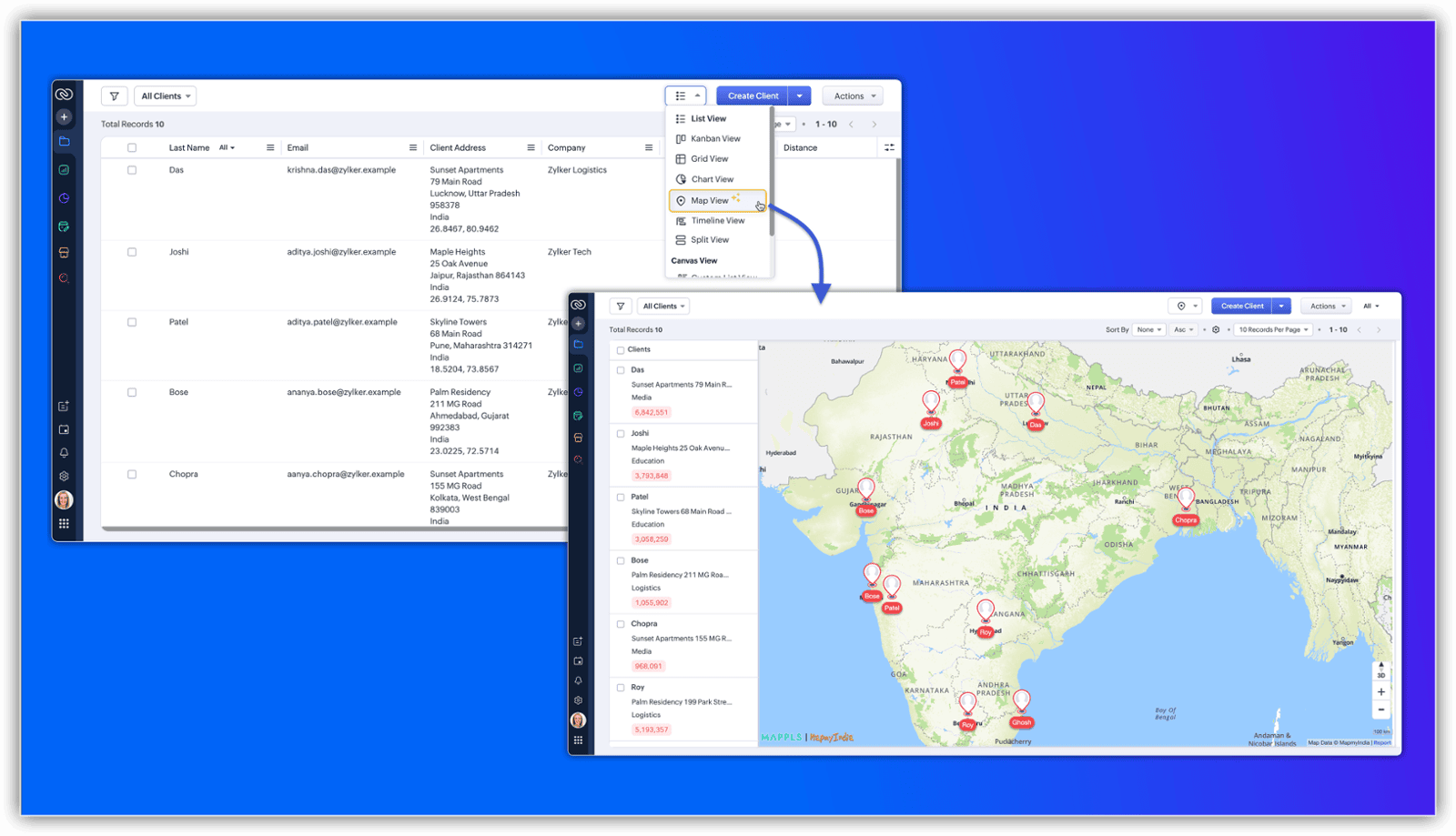 Zoho CRM now allows you to bridge the gap between the List View and the Map View.
