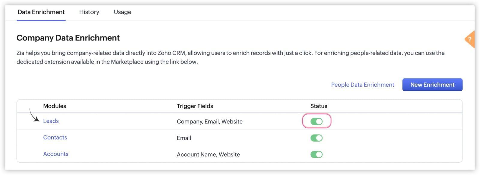 It is important to know that Data Enrichment is a premium feature and runs on a "Credit" system, depending on your Zoho CRM Edition (Enterprise or Ultimate).